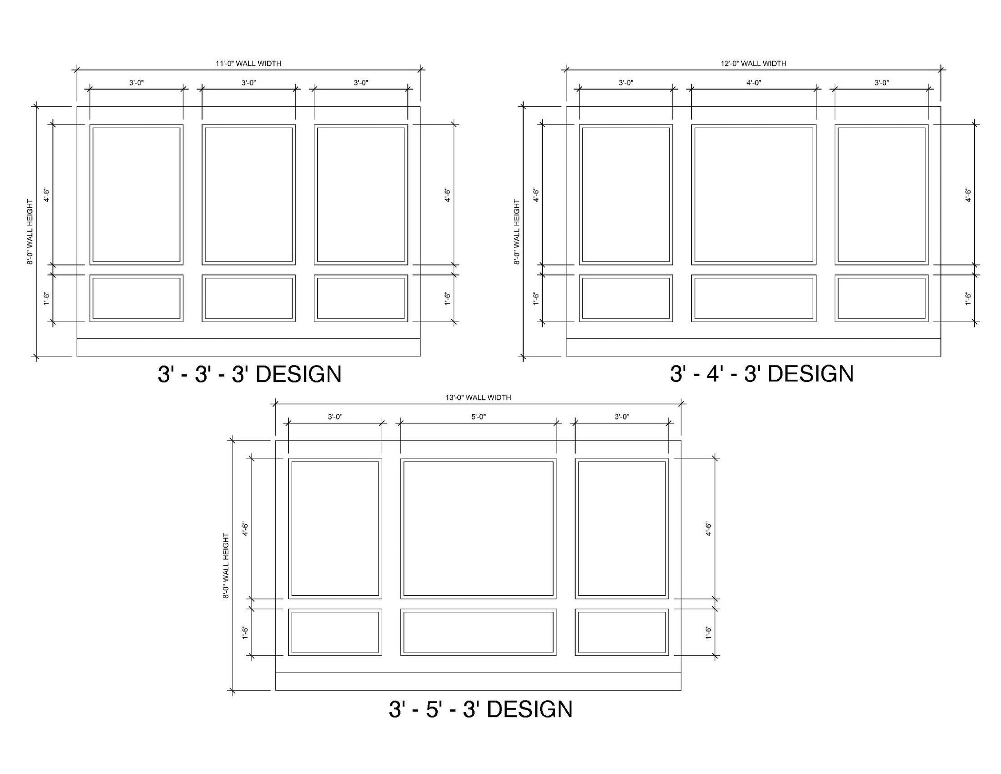 - 3-panel layout — classic wall paneling design with three upper frames and three lower frames.